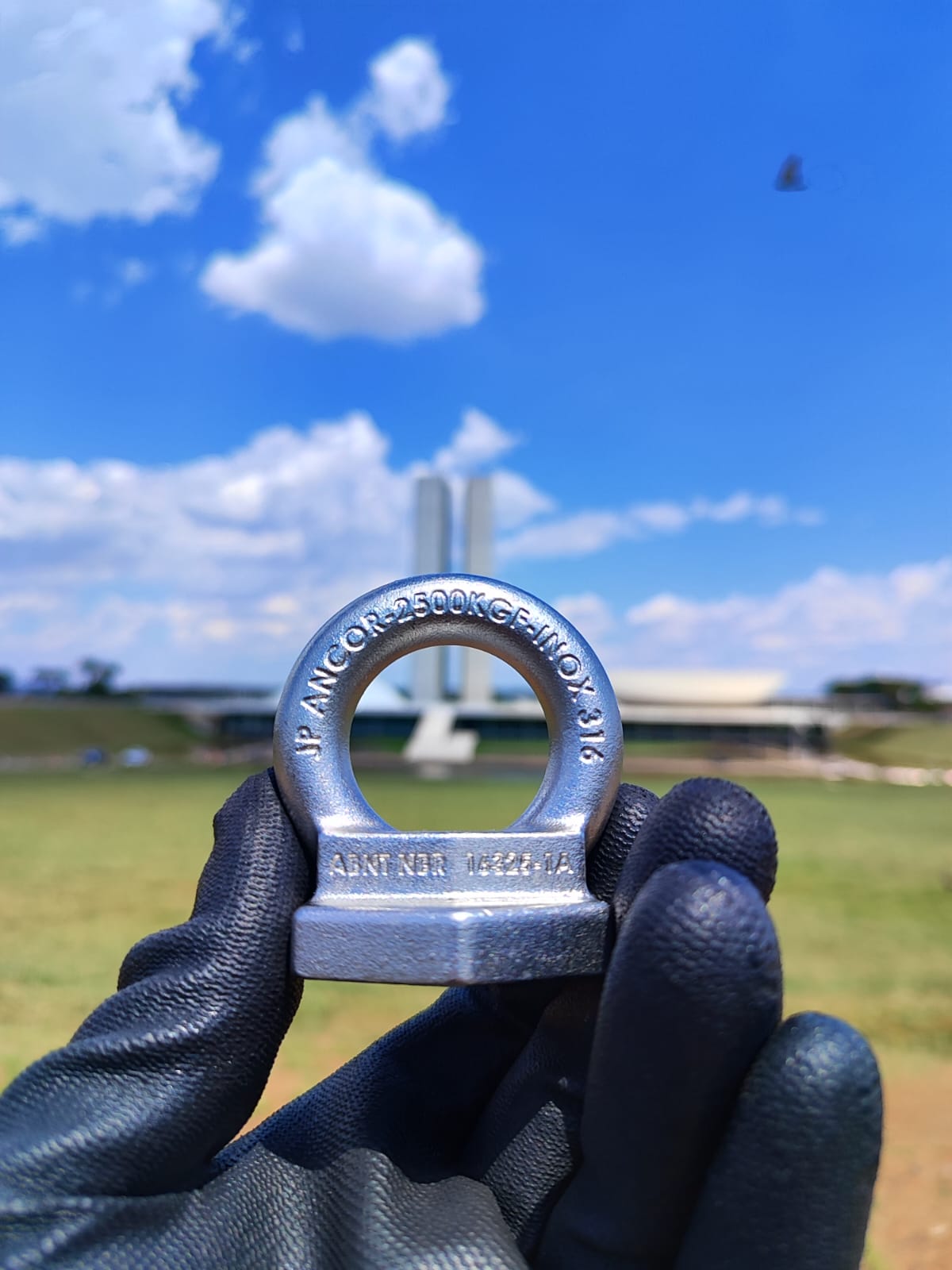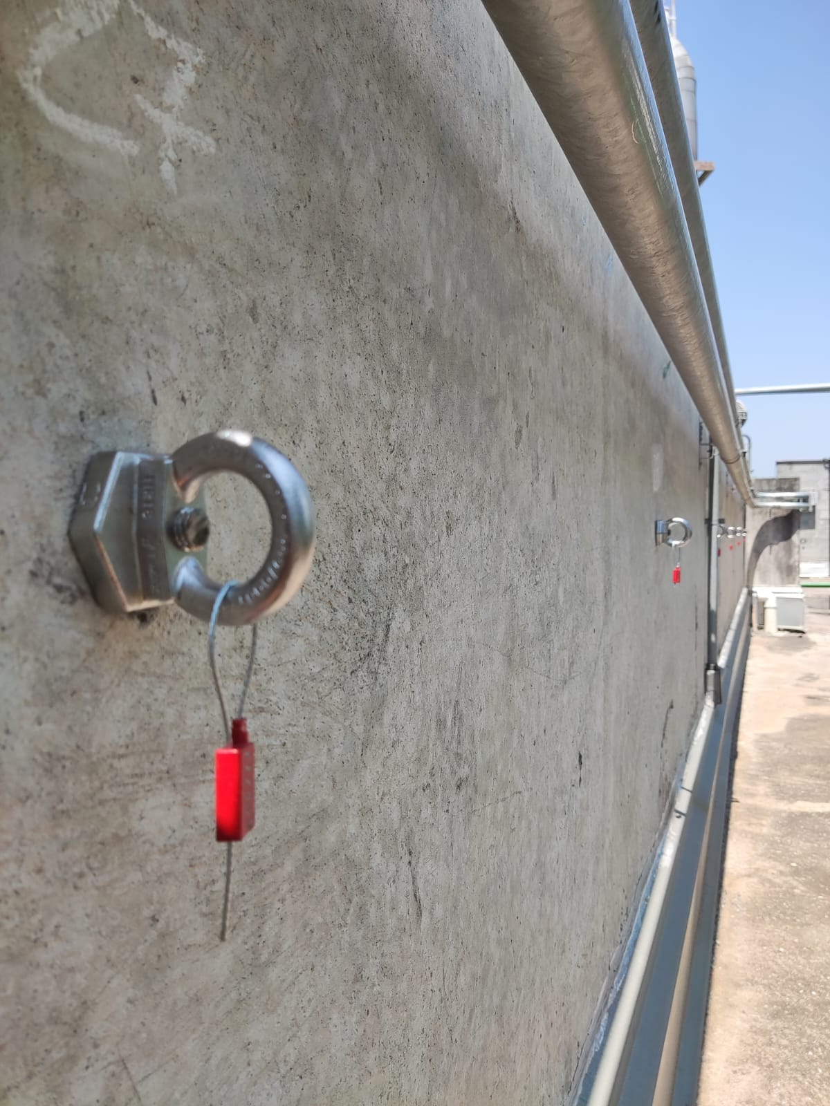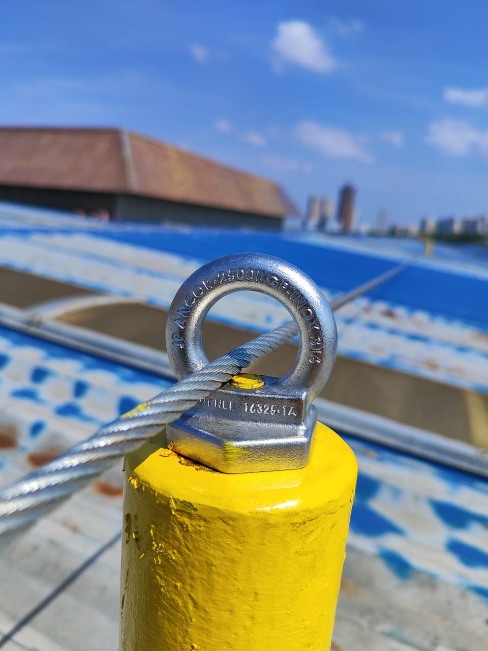 Os dispositivos de ancoragem são fabricados em aço inoxidável, em conformidade com normas NR-18, NR-35 e NBR 16325-1. Testados em laboratório acreditado pelo INMETRO, sendo: kit completo (olhal + barra) com barra roscada de 1/2.